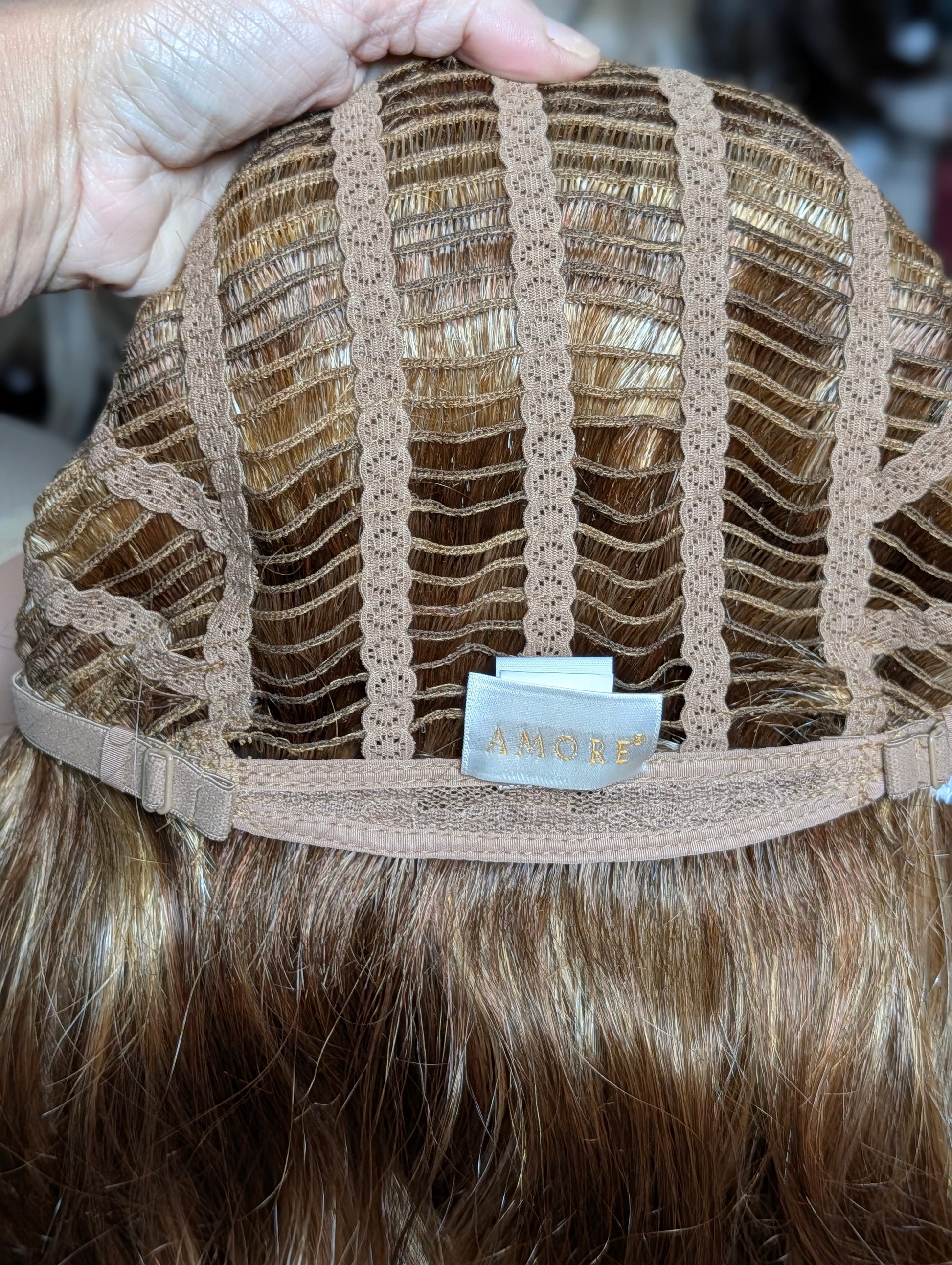 Brittany by Amore part of the Rene of Paris Company is a long luscious loosely wave synthetic wig. Made with a monofilament top that resembles the most realistic hairline and enables parting versatility and multi-directional styling.