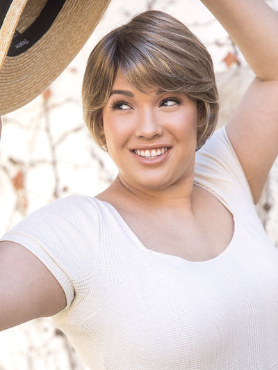 Casey by Amore part of the Rene of Paris Company, is a flipped out highly textured and wispy synthetic wig. Casey base construction features an open weft cap construction allowing for an airy cool design which is lightweight and ideal everyday wear and a double monofilament top for styling versatility and realistic scalp