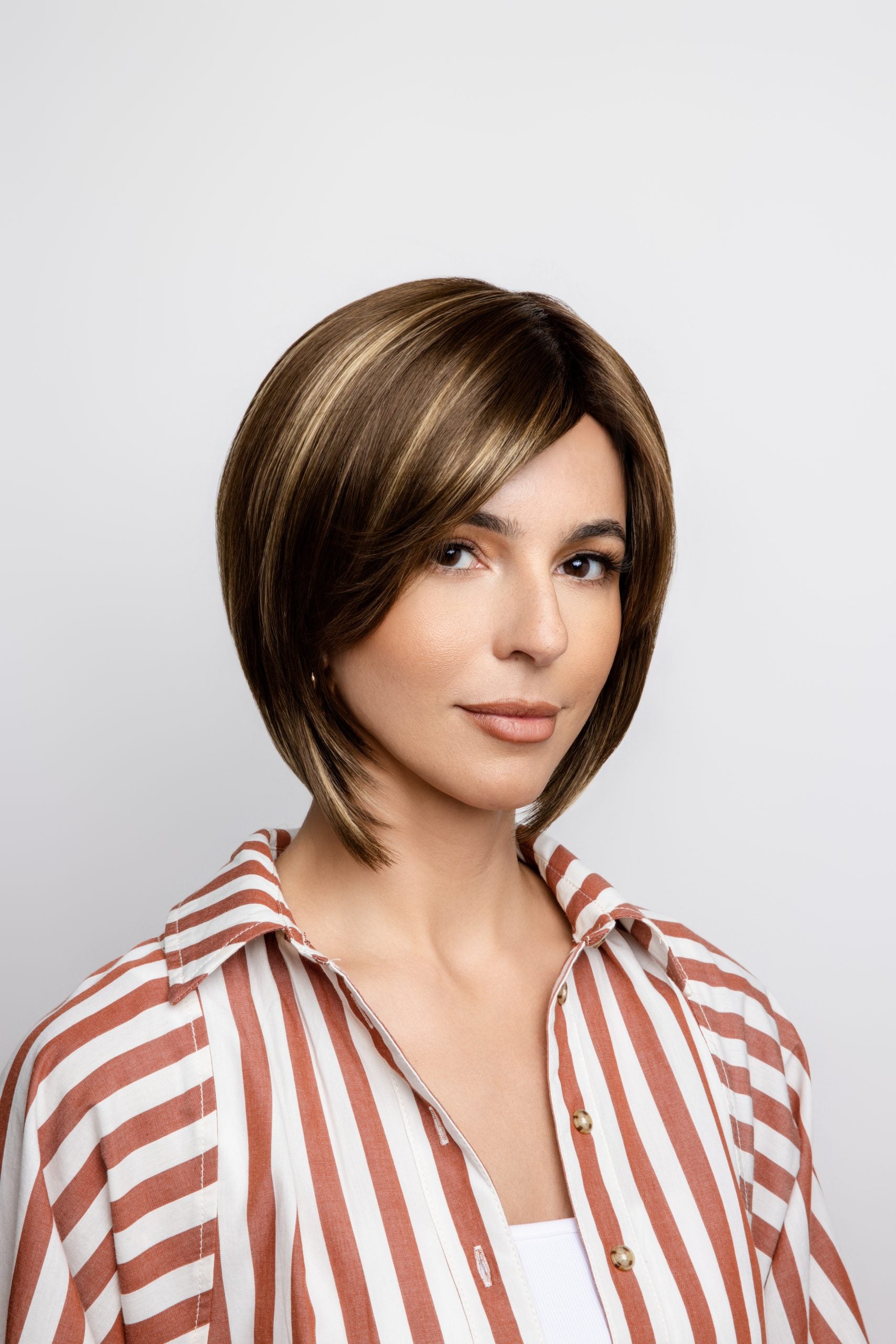 Codi from our Amore Collection is a short synthetic wig. This straight angled bob ready-to-wear wig is an angled bob with side swept fringe to create a simply beautiful look. Its Double Monofilament cap construction is combined with calibrated machine wefting along the sides and back. Codi’s cap includes polyurethane tape tabs along the front and adjustable tabs in the back neck area, to allow for comfortable fit. The result is a comfortable fit with a natural look that is both fashionable and easy to wear. Also available in Codi XO cap.