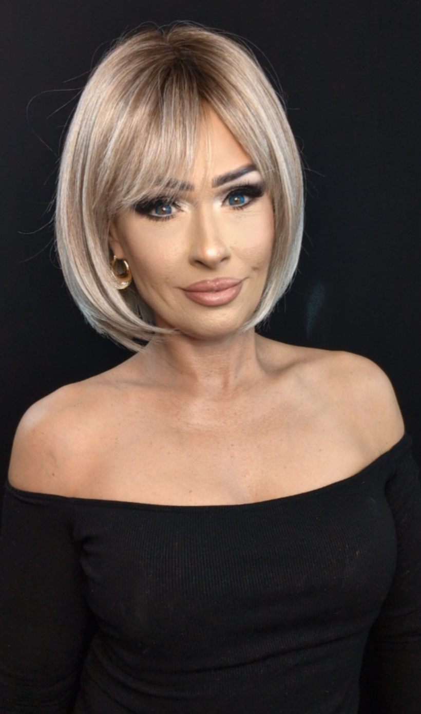 Aria from our Alexander Couture Collection is a short length heat friendly wig. This straight ready-to-wear wig is a versitile short bob with invisible layers that create a stunning silhouette, whether styled sleek or choppy. It’s soft cut bangs add a touch of elegance, making this look effortlessly chic. Aria is an extended lace front, lace part. Its lace front will give you a natural look with the lace part cap. Aria cap construction has adjustable tabs in the back nape area to allow a more comfortable fit. The result is a comfortable fit with a natural look that is both fashionable and easy to wear.