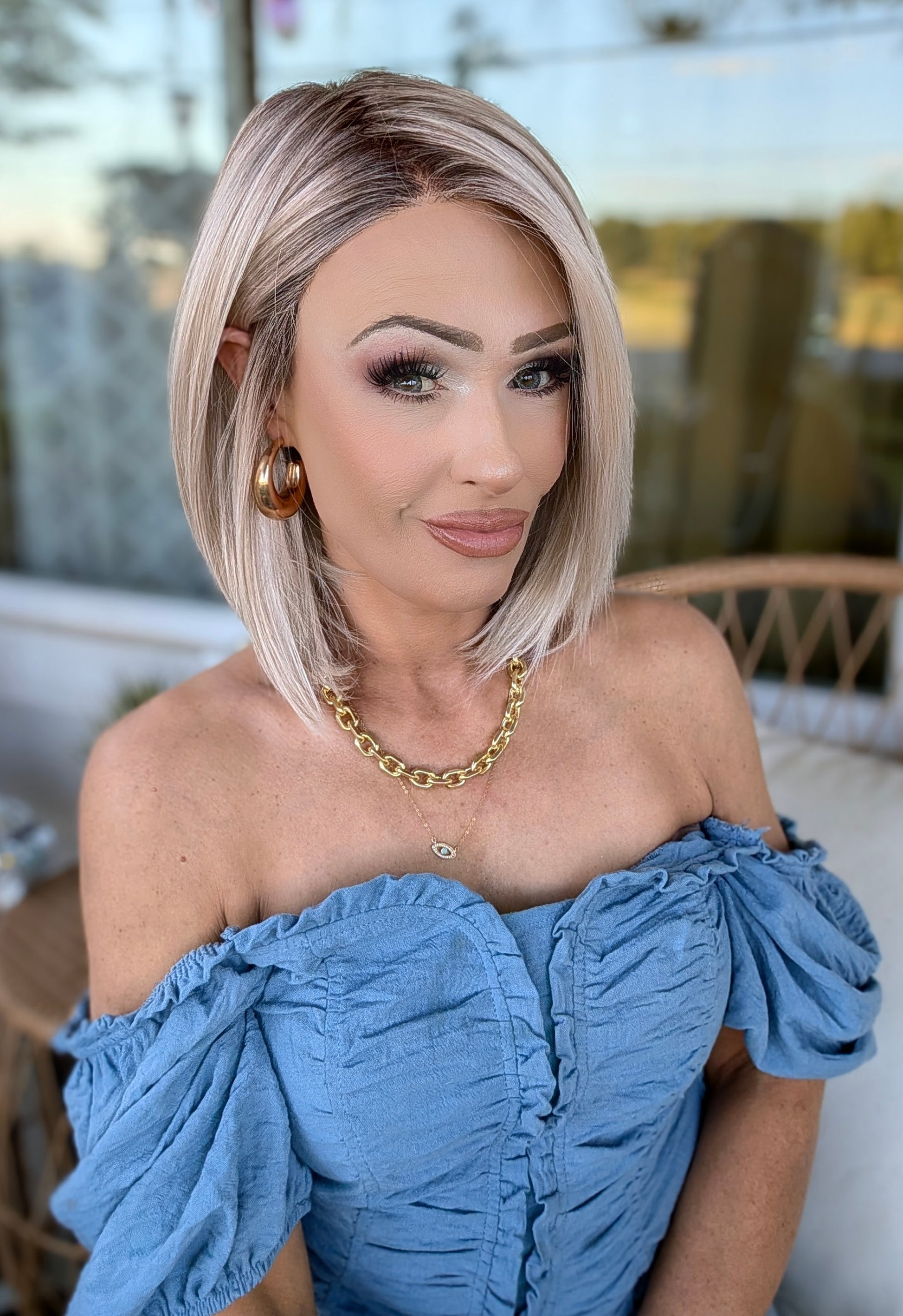 Dallas features a soft monofilament top that allows for a natural look and effortless styling. Designed with a lace front, it provides a realistic hairline for an incredibly lifelike appearance. The high-density construction ensures a fuller, voluminous effect, while the medium-length bob cut offers a chic and modern look. The straight strands are crafted from premium heat-friendly fiber, making it possible to use heat styling tools for versatile styling options.