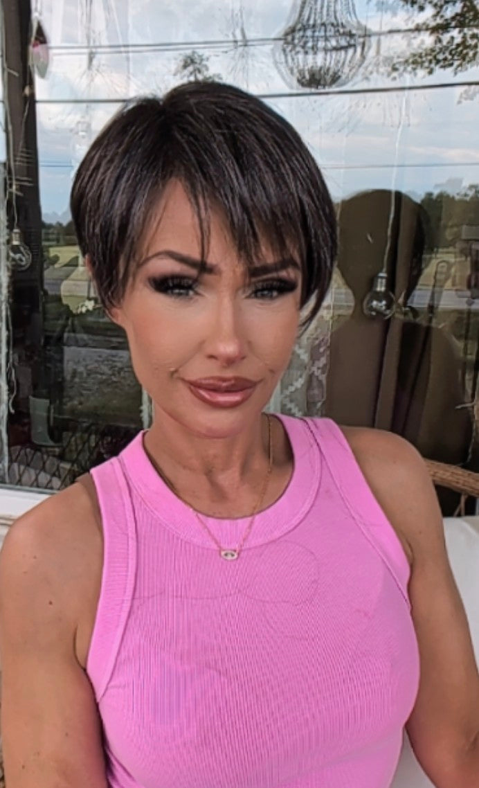 Front Lace Line | Have fun with Jett, a bold, asymmetric pixie featuring a sheer lace front. Subtle layering allows for natural movement, so you can muss her up for a sleek and edgy look or keep it soft and simple.