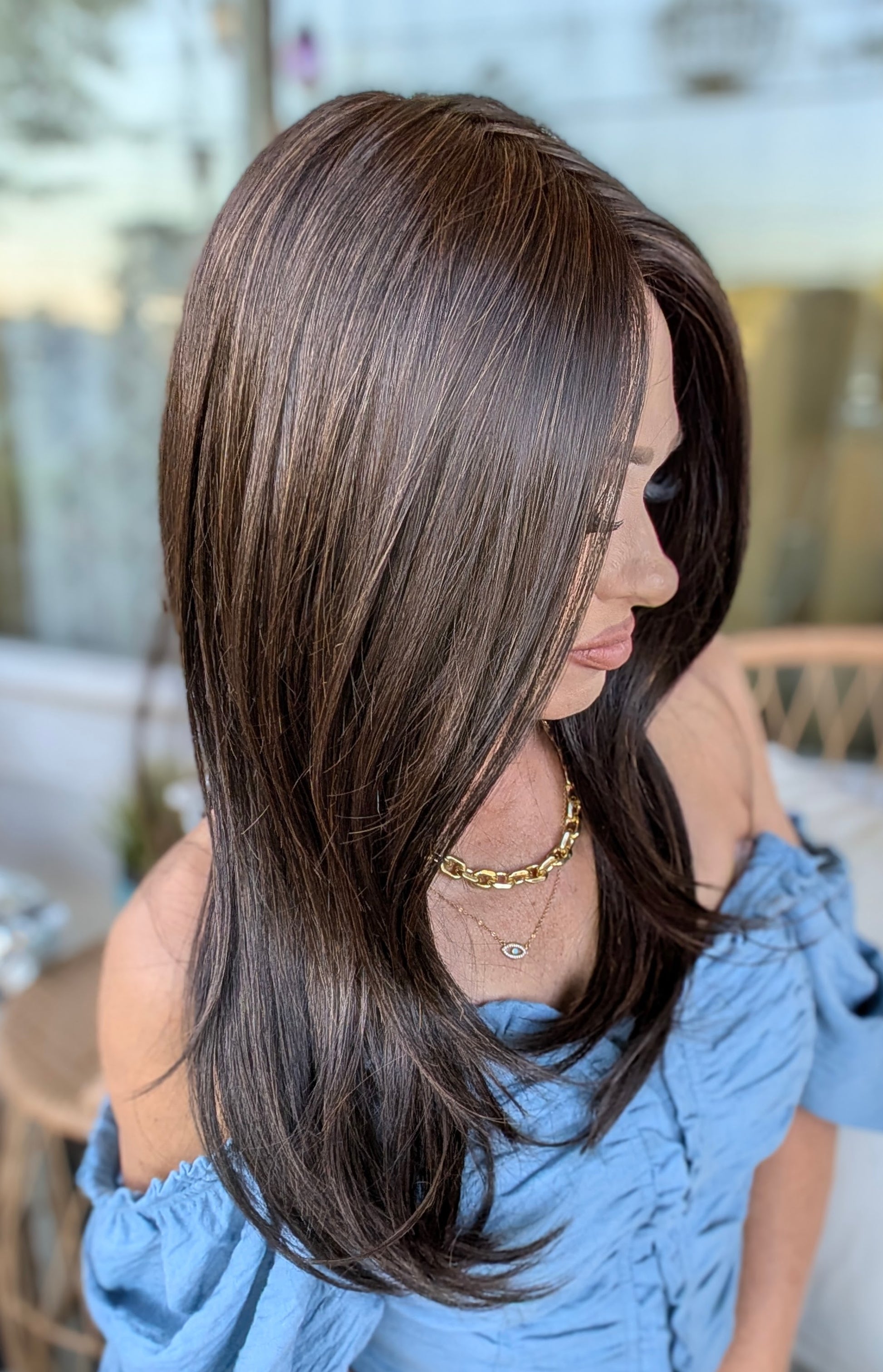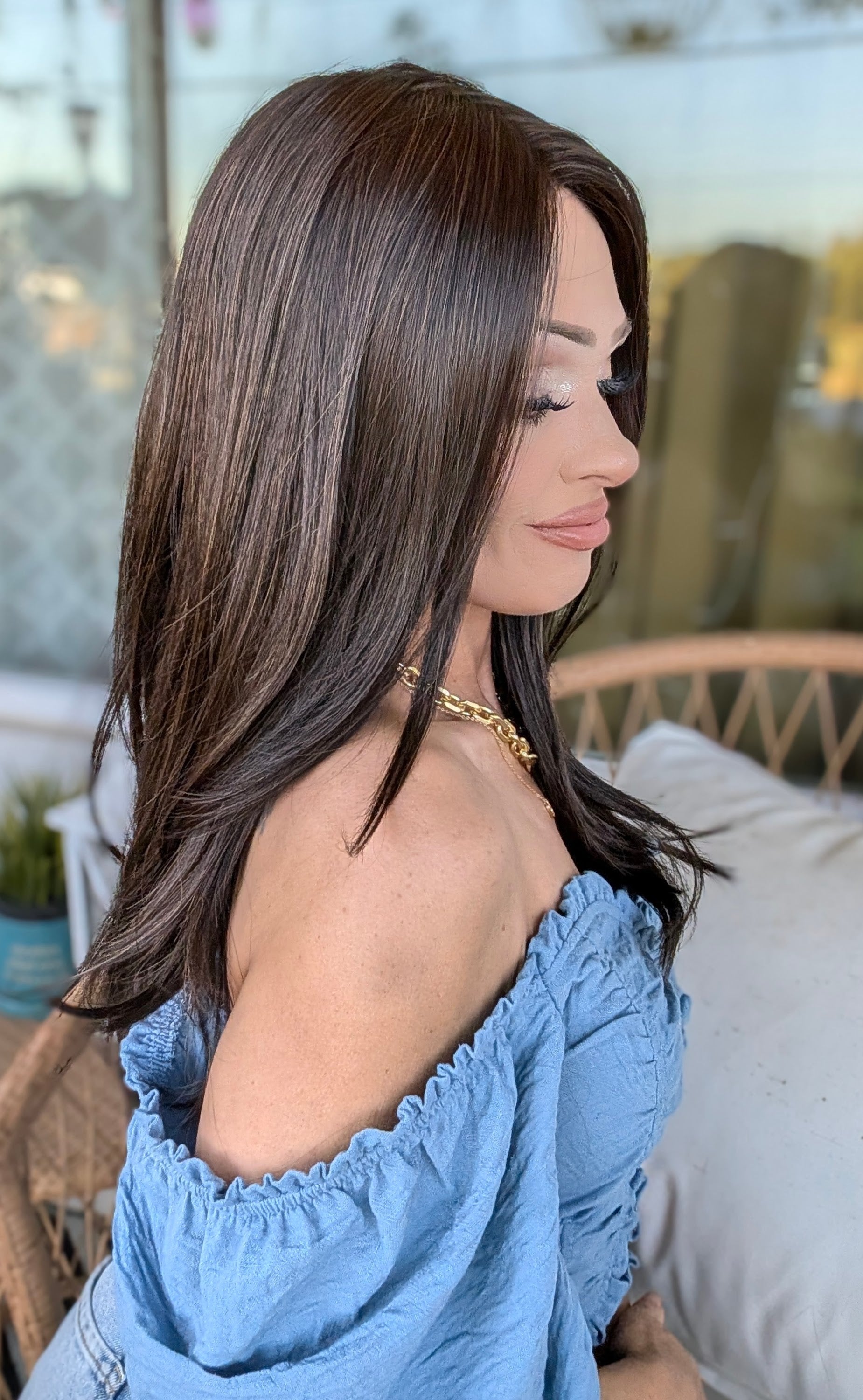 Discover the transformative power of the Leading Edge, featuring an Ear-to-Ear Mono Lace Front that creates a flawlessly invisible hairline. With its soft, face-framing long layers that blend effortlessly, the Leading Edge Wig embodies a sleek, modern silhouette that adapts effortlessly to your style—whether you wear it straight back, styled in glamorous waves, or elegantly pulled into a chic ponytail.