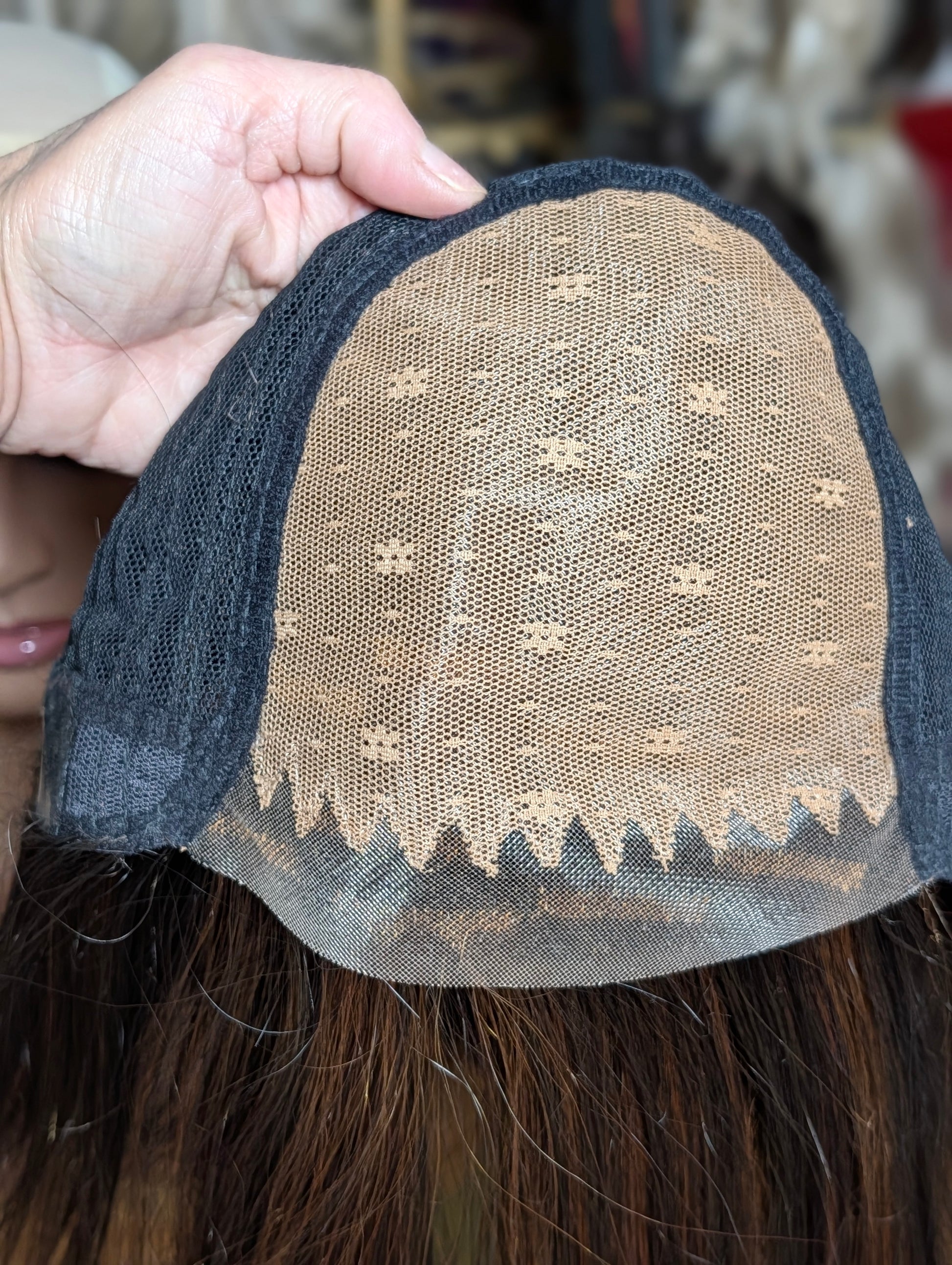 Embrace the hottest hair trend of the season. This Angled/Stacked bob has a modern, high fashion look that's sure to turn heads. A full monofilament cap allows for multidirectional parting possibilities and gives the appearance of natural hair growth. Soft Silicone Eartabs and Nape makes for an ultra comfortable cap.
