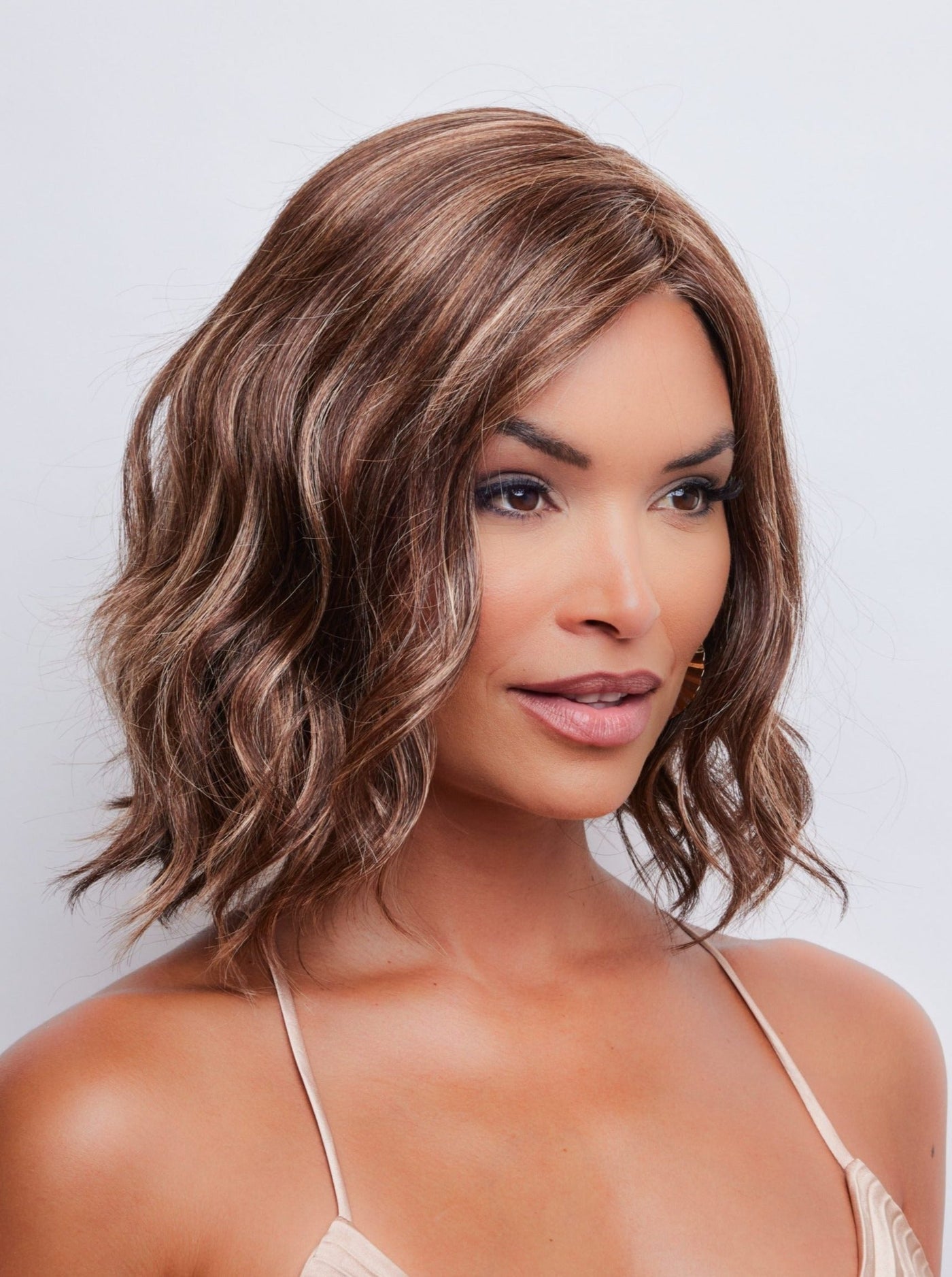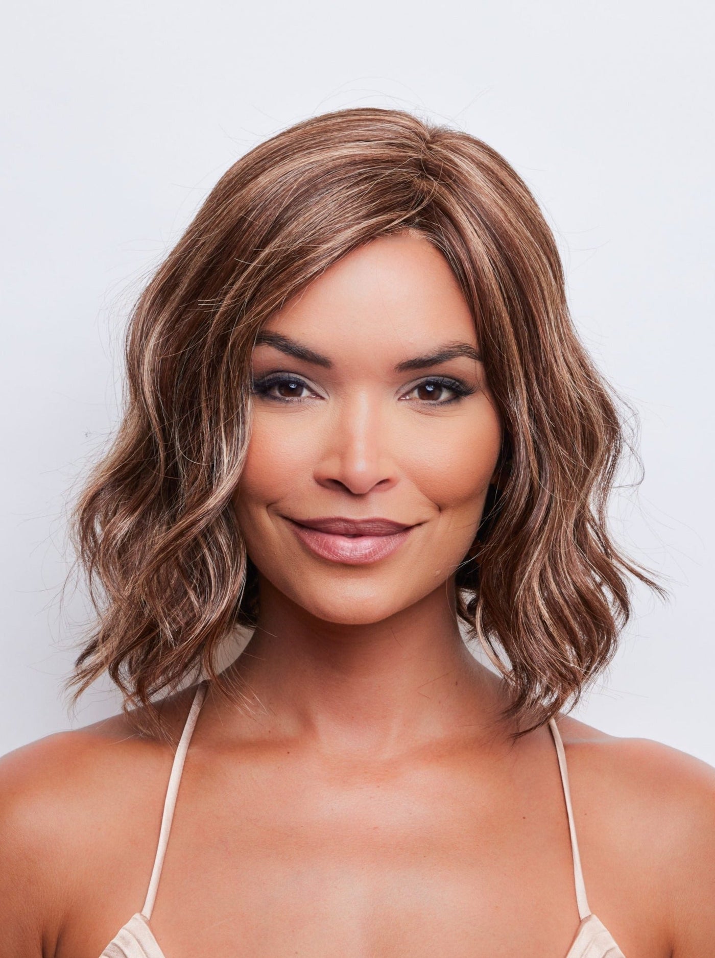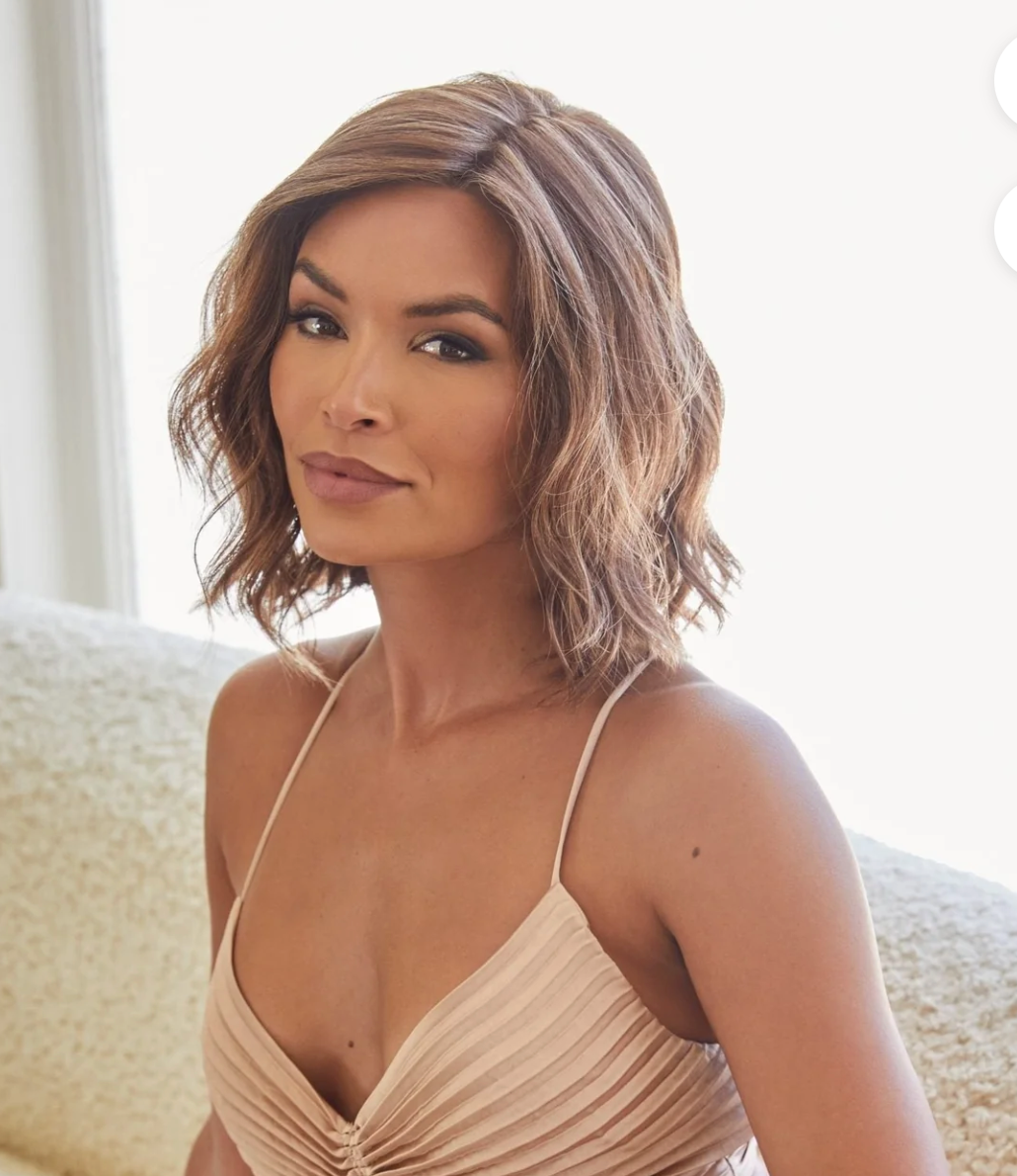 Discover the show-stopping neck-length beach wave wig, Merrill, from the Noriko Collection. Made with Noriko's newest Natural Movement fiber blend, this stunning wig offers the perfect ready-to-wear look and feel, without the excess shine. With a lace front and lace part, achieve a natural-looking hairline and adjust the tabs in the nape for a comfortable and snug fit all da