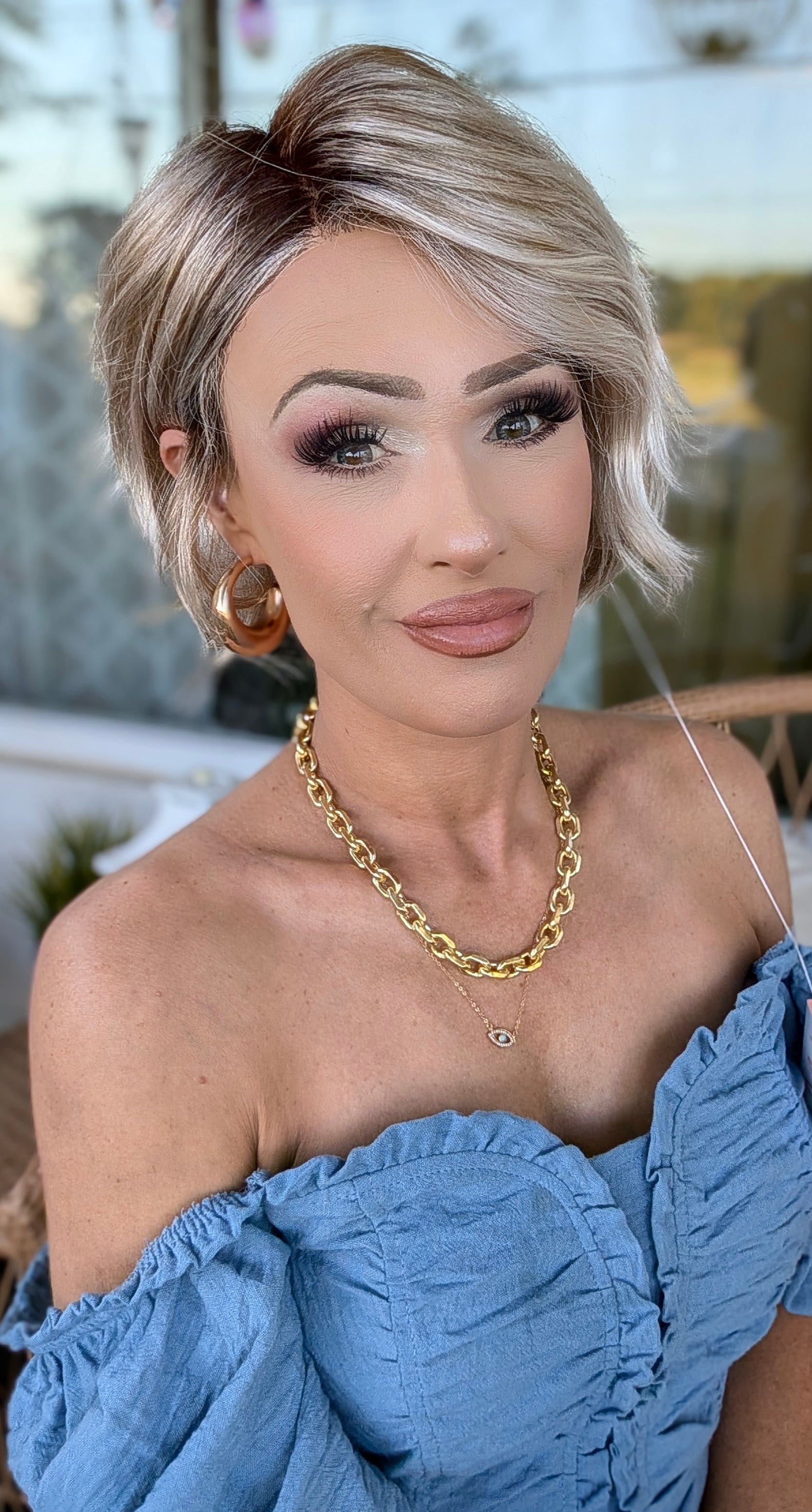 - Hair Length: Bangs 7.5" | Ear-Tab 6" | Top 4.5-7.5" | Sides 3.5-6" | Back 2-6" | Nape 2" | Overall: 8.5"