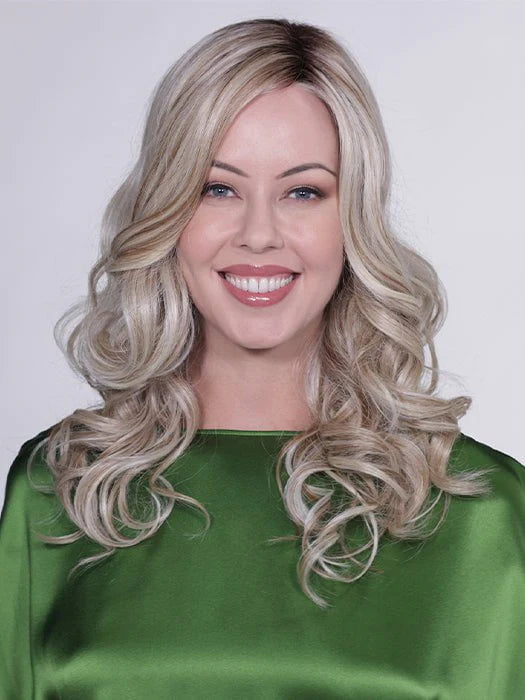 Taylor by Belle Tress is from the Lux Collection. The long hair is arranged into bouncy curls that flow past the shoulders. The heat friendly synthetic fiber offers versatile styling options. The extended lace front creates a flawless hairline, and the full monofilament top allows you to part the hair in any direction.
