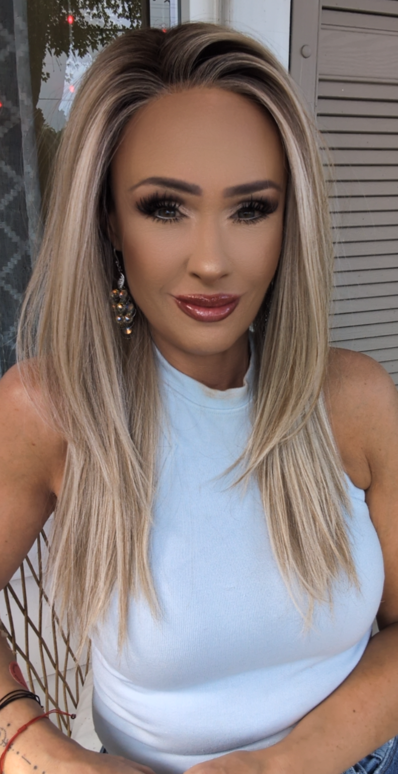 8/27/26GR | Medium Brown w/ Strawberry Blonde and Gold Blonde highlights w/ Gradient Root