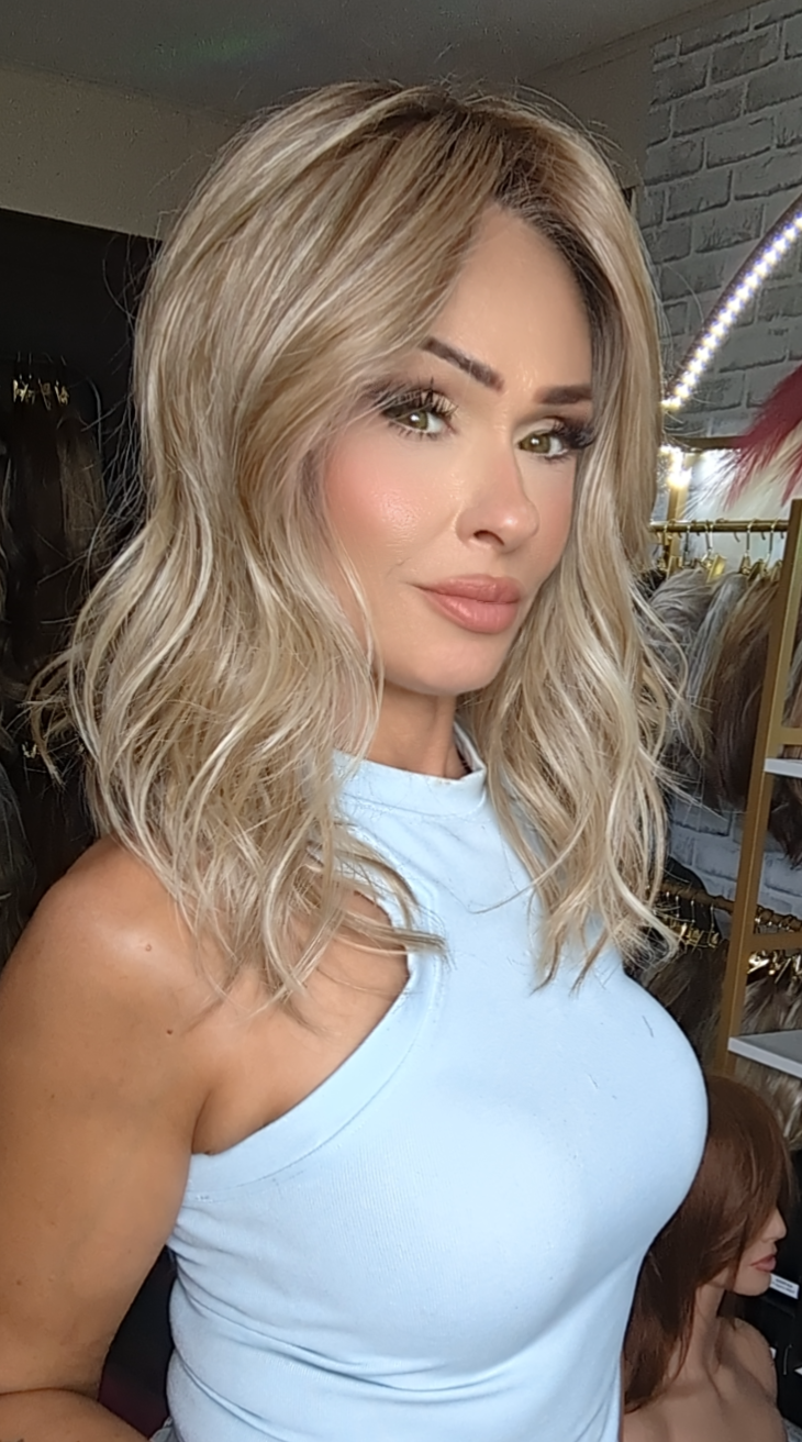The city of Verona is rich in Roman antiquities (also known as Little Rome); nevertheless, it is primarily famous as the setting of the love story Romeo and Juliet. Verona by Belle Tress features graceful loose waves and a stylish layered haircut with low-density volume. It is airy and effortless, offering an extended lace front that creates the appearance of natural hair growth, a generous monofilament side part, and the famous Belle Tress HF fiber to give you the freedom to change styles from wavy to straight.