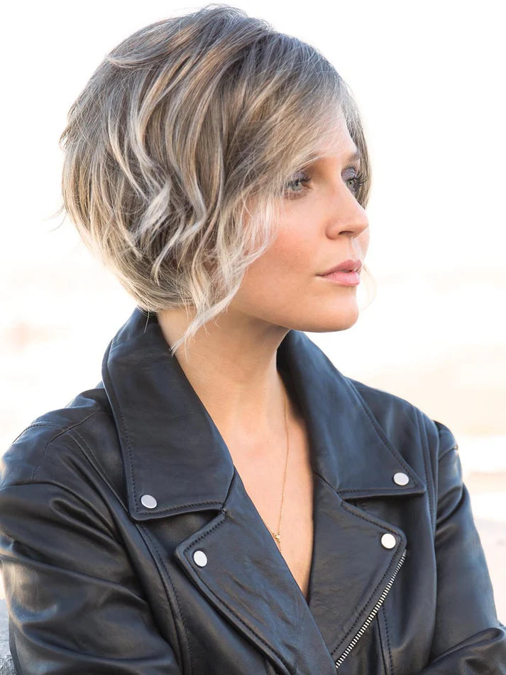 Wyatt from our Rene of Paris Hi Fashion Collection is a short-length synthetic wig. This wavy ready-to-wear wig is a chin length textured bob with a trendy, side swept fringe. Wyatt is a modern style that will create natural volume and movement to your everyday look. Wyatt is machine made with adjustable tabs in the back nape area to allow a more comfortable fit. The result is a comfortable fit with a natural look that is both fashionable and easy to wear.